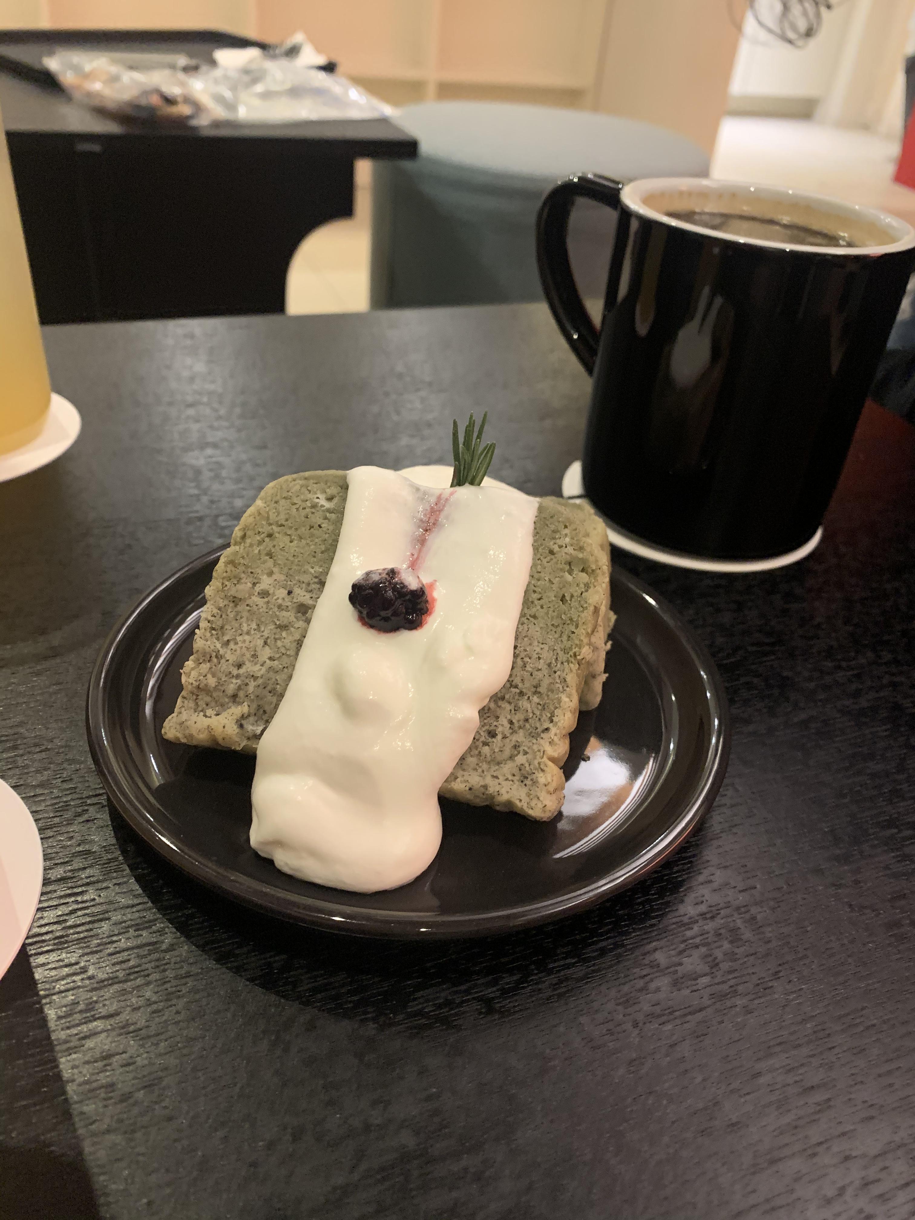 아래쪽은 흑임자맛 위쪽은 쑥...? 인가 뭐였더라 암튼 슴슴하지만 향이 좋은 카스테라가 넘 달지 않읂데 거기에 달달한 생크림이 올려지다니!!
