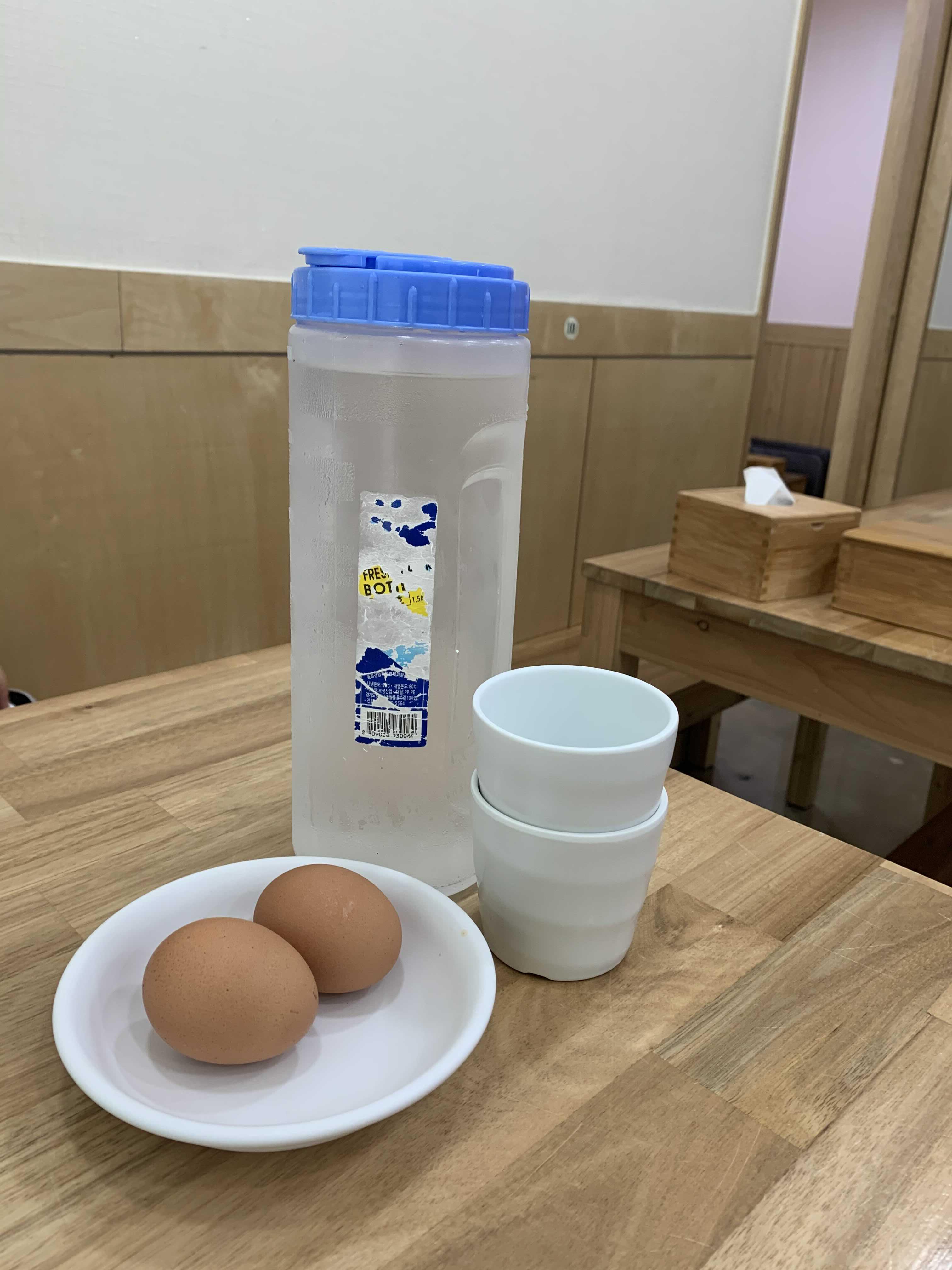 계란을 먹을 것인지 물어보는데 현금 계산시에는 무료, 카드 계산시에는 500원이 추가된다