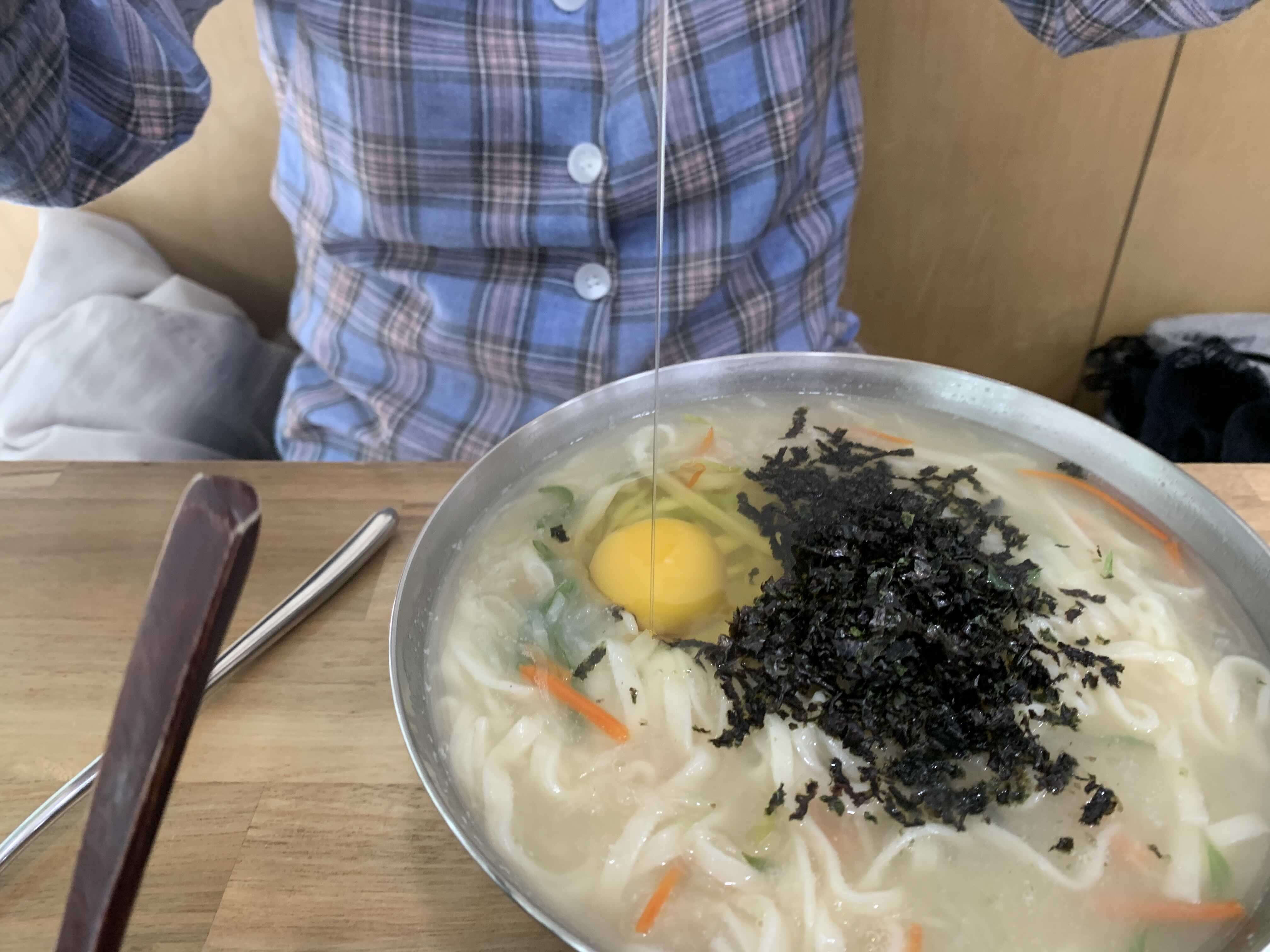 걸쭉한 것을 좋아하는 사람은 칼국수가 나오자마자 계란을 탁!