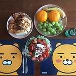 회사 과장님이 챙겨주신 샐러드채소에 코스트코 리코타치즈, 방울토마토를 올렸다 그리고 근처 시장에서 사온 천혜향, 씨없는포도, 집에 남아있던 바나나 하나 즐거운 주말 브런치!!