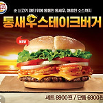버거킹에서 "통새우 와퍼", "통새우 스테이크버거"를 출시하면서 카톡플친들에게 단품 구매시 세트 무료 업그레이드 쿠폰을 또 보내 주었다 사용이 저조했나?! 이유는 알 수 없지만 먹어보고 싶었는데 굳굳  통새우와퍼/통새우스테이크버거 단품 구매 시 세트 무료 업그레이드 쿠폰 2016년 6월 13일 ~ 6월 19일 쿠폰은 각각 하남씩 주는데, 항상 그냥 와퍼보다 스테이크와퍼가 더 맛있어서 이번에도 스테이크 와퍼를 주문했다 두 가지는 패티와 빵, 크기에 차이가 있다  직화 방식으로 구운 프리미엄 스테이크 패티에 탱글탱글한 식감의 갈릭페퍼새우와 치즈 매콤하고 상큼한 스파이시 토마토 소스까지 여러분의 여름철 입맛을 깨워드릴 버거킹의 프리미엄 버거! 깜빡하고 감자튀김을 안 찍었는데, 다른 곳..