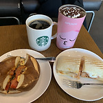 스타벅스 신상 비프 라우겐 베이글을 먹은 기념으로 하는 블로깅 같이 먹은 음료는 아메리카노, 휘핑&초코 드리즐 올린 라떼 다른 메뉴는 바비큐 치킨 치즈 치아바타 •비프 라우겐 베이글 6300원 부드러운 식감의 독일식 베이글에 피넛버터크림, 올리브 타파네이드 소스를 바르고 야채 치즈 그리고 소고기를 넣어 만든 든든한 샌드위치 입니다 딱 들어올리자마자 맨 밑에 깔린 초록색 야채의 향이 훅 밀려온다 시금치를 데친 것 같은 냄새인것으로 보아 루꼴라인 것 같다 베이글이 기존보다 훨씬 쫄깃하고 살짝 짭짤하니 더 맛있다 하지만 피넛버터크림이나 올리브 타파네이드 소스 맛은 그리 많이 나지 않고 코스트코 소불고기 같은 맛이 난다 소고기는 어떤 부분은 좀 질긴 것도 있다 먹을 때 많이 흘러내려서 좀 아쉬움... 베..