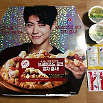 얼마 전 이웃 블로거님이 당첨되셔서 드셔보셨다던 브레이즈드 포크 피자가 너무 먹어보고싶어 드디어 주문하였다 나는 SKT멤버쉽 할인과 카드 할인으로 50%를 할인받아 34900원->17450원에 먹을 수 있었다 나도 빤딱빤딱 홀로그램 피자 상자에 담겨져서 왔다*.* 육즙 가득, 풍미 가득한 브레이즈드 포크와 진한 그뤼에르 멜팅 치즈, 쫄깃한 생 모짜렐라 치즈를 한 입에 •칼로리 L사이즈 1조각 351kcal/128g M사이즈 2조각 411kcal/151g 페터크림치즈, 그뤼에르 멜팅치즈 뿐만 아니라 모차렐라치즈, 생 모차렐라 치즈, 브리치즈소스까지 총 다 종류의 치즈가 토핑된다 한 마디로 치즈범벅!! 피자를 열자마자 폭탄처럼 얹어져 있는 그뤼에르 멜팅치즈가 굉장히 눈에 띄었다 그 사이로 ..