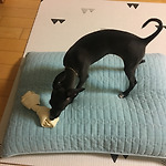 이탈리안 그레이하운드 마크와 함께하는 육견일기 벽지 사건 이후 강아지 장난감을 엄청 많이 샀다 그 중에서 마크가 제일 호기심을 보인 것은 바로 "페츠루트 개껌" 오래 먹으라고 M사이즈를 샀는데 마크에게는 넘나 큰 것... 소 중형견에게 적당하다고 하여 구매했는데, 거대한 장난감의 크기에 놀란 나머지 개껌을 경계하며 으르렁 거렸다 그래도 두 시간 후에는 열심히 씹고 뜯고 맛보고 있었음 그런데 한 이틀? 열심히 뜯더니 그 이후에는 관심이 하나도 없다 우리가 좀 잡아주면 살짝 깔짝깔짝 거리다가 혼자서 놀 때는 전혀 가지고 놀지 않는다 이럴 줄 알았으면 작은 걸로 살걸... 7일 아침에 출근하려던 신랑이 포착한 모습 뭐가 좋은지 혼자서 저렇게 베게에 누워서 혼자 놀고 있었다 살그머니 다가가서 포..