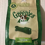 강아지 치석 제거용 껌으로 유명한 그리니즈 티니 11번가에서 세일해서 한 번 구매해 보았다 그나저나 저 봉투는 뜯지 못할 것 같아서 바닥에 놔뒀더니, 마크가 모서리를 찢어버림 요즘 이가 간질간질해서 이것저것 열심히 씹고 뜯는 마크이다 내가 구매한 것은 그리니즈 티니 사이즈는 티니와 쁘띠 두 가지가 있는데 7kg 미만의 반려견에게는 티니 사이즈가 적당하다 펫샵 같은 데에는 하나인가 두개에 500원에 판매하기도 한다 기호성이 궁금하다면 낱개를 사서 먹여보는 것도 괜찮을 것 같다 당연한 얘기지만, 강아지도 양치질을 해야 한다 양치질을 하지 않으면 치석이 생기고, 스케일링도 해 줘야 한다고! 하지만 나는 양치질을 하는 것이 그렇게 쉽지가 않고, 어렸을 때 부터 이거라도 살짝씩 먹여서 애가 좀 적응할 수 ..